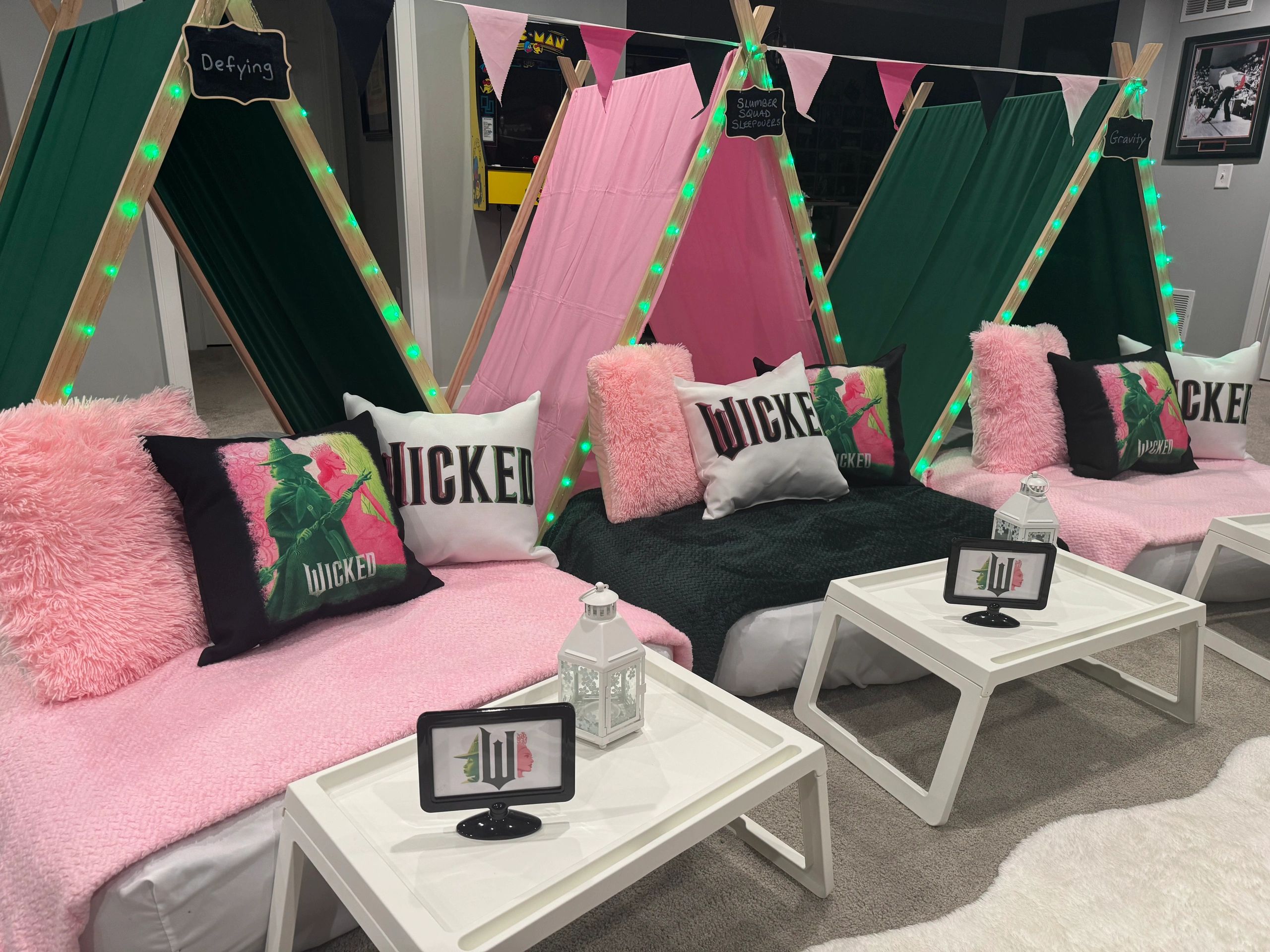 Whether you are a Glinda or Elphaba fan, this pink and green slumber squad party will have you "defying gravity" with all of your friends. This party package will have you and your sleepover crew feeling "popular".